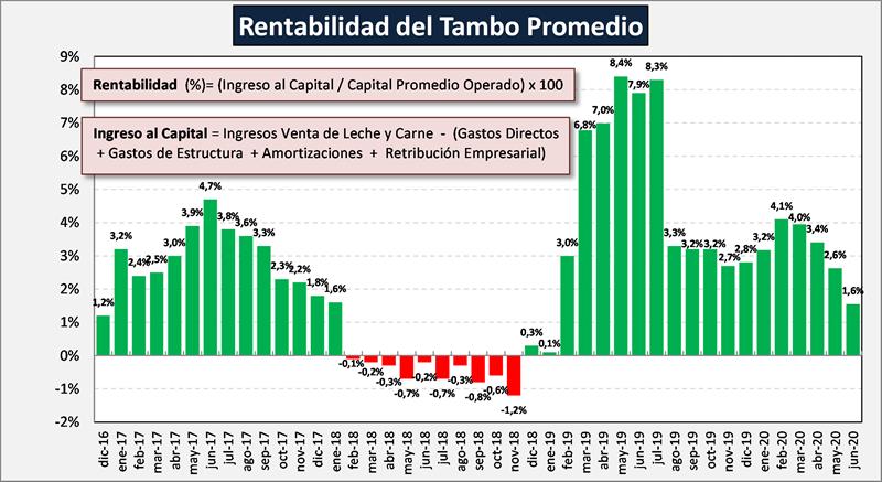 · La rentabilidad fue 1,08 puntos porcentuales inferior respecto al mes anterior y -6,35 con respecto a junio de 2019;