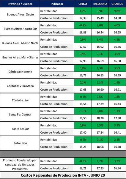 Costos Regionales de Producción de Leche, valores actualizados a JUNIO de 2020 23/7/2020