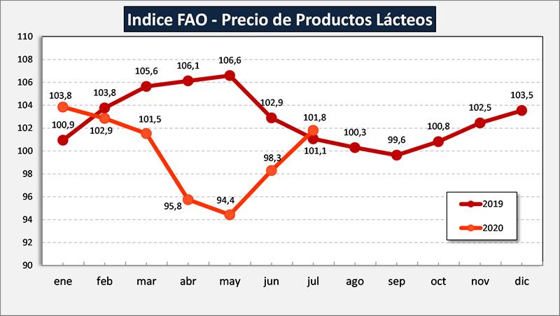 Indice de Precios de los Lácteos de FAO 6/8/2020