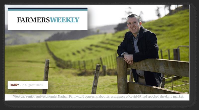 El economista agrónomo senior de Westpac, Nathan Penny, dijo que las preocupaciones sobre el resurgimiento de covid-19 habían asustado al mercado lácteo.