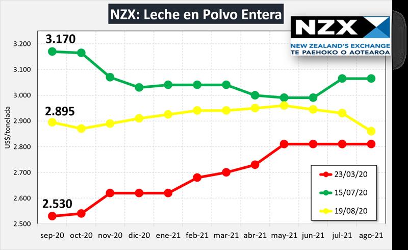 Mercado de Futuros NZX: Leche en Polvo Entera 19/8/2020