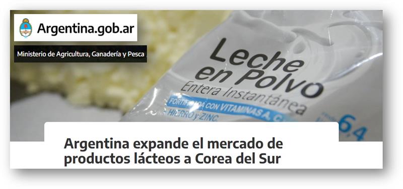 ARGENTINA: expande el mercado de productos lácteos a Corea del Sur 1/10/2020