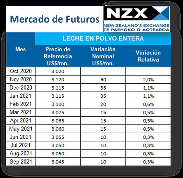 Mercado de Futuros NZX - Leche en Polvo Entera 13/10/2020