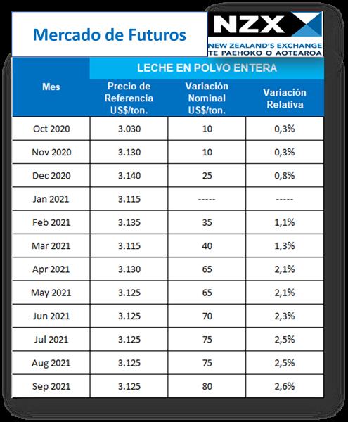 Mercado de Futuros NZX - Leche en Polvo Entera 14/10/2020