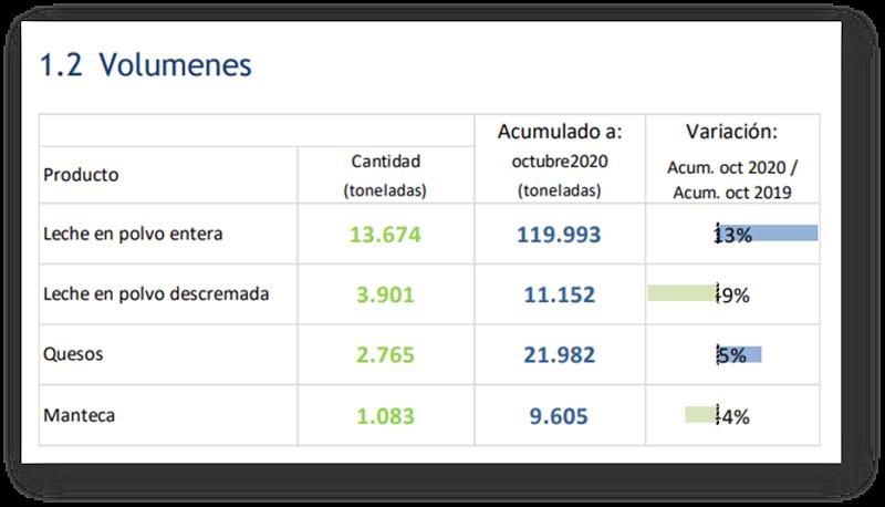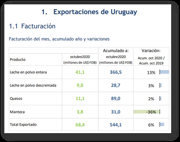 URUGUAY: exportaciones de lácteos - octubre 2020 16/11/2020