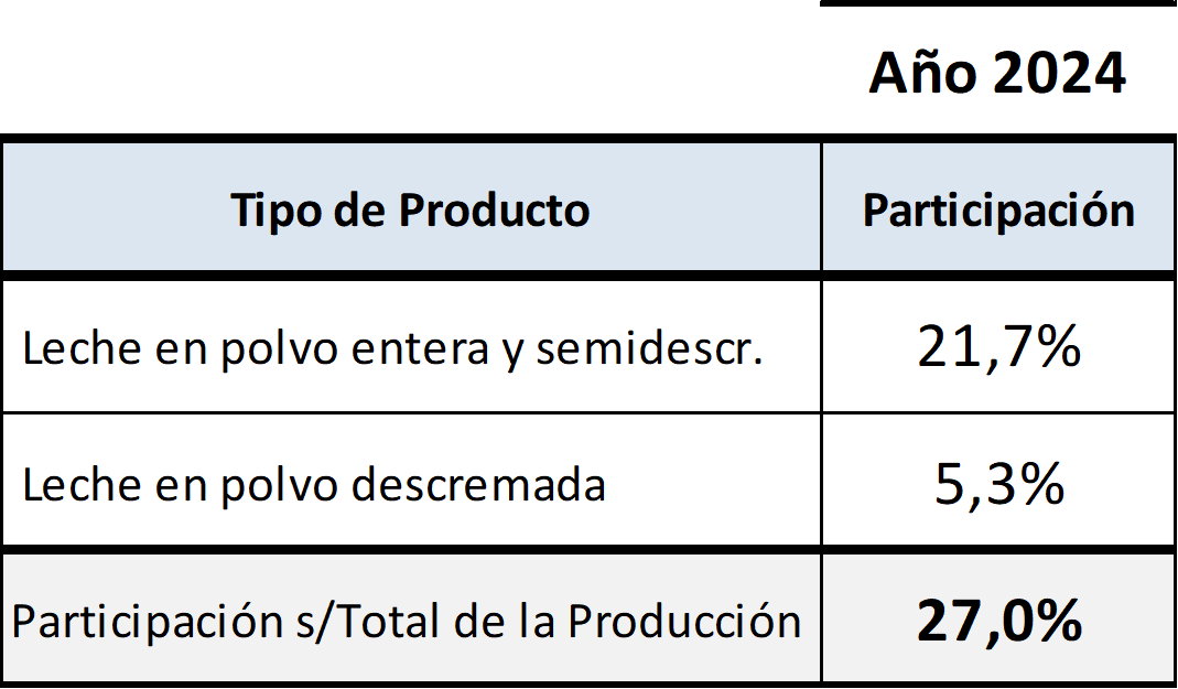 Destino de la leche procesada: leches en polvo