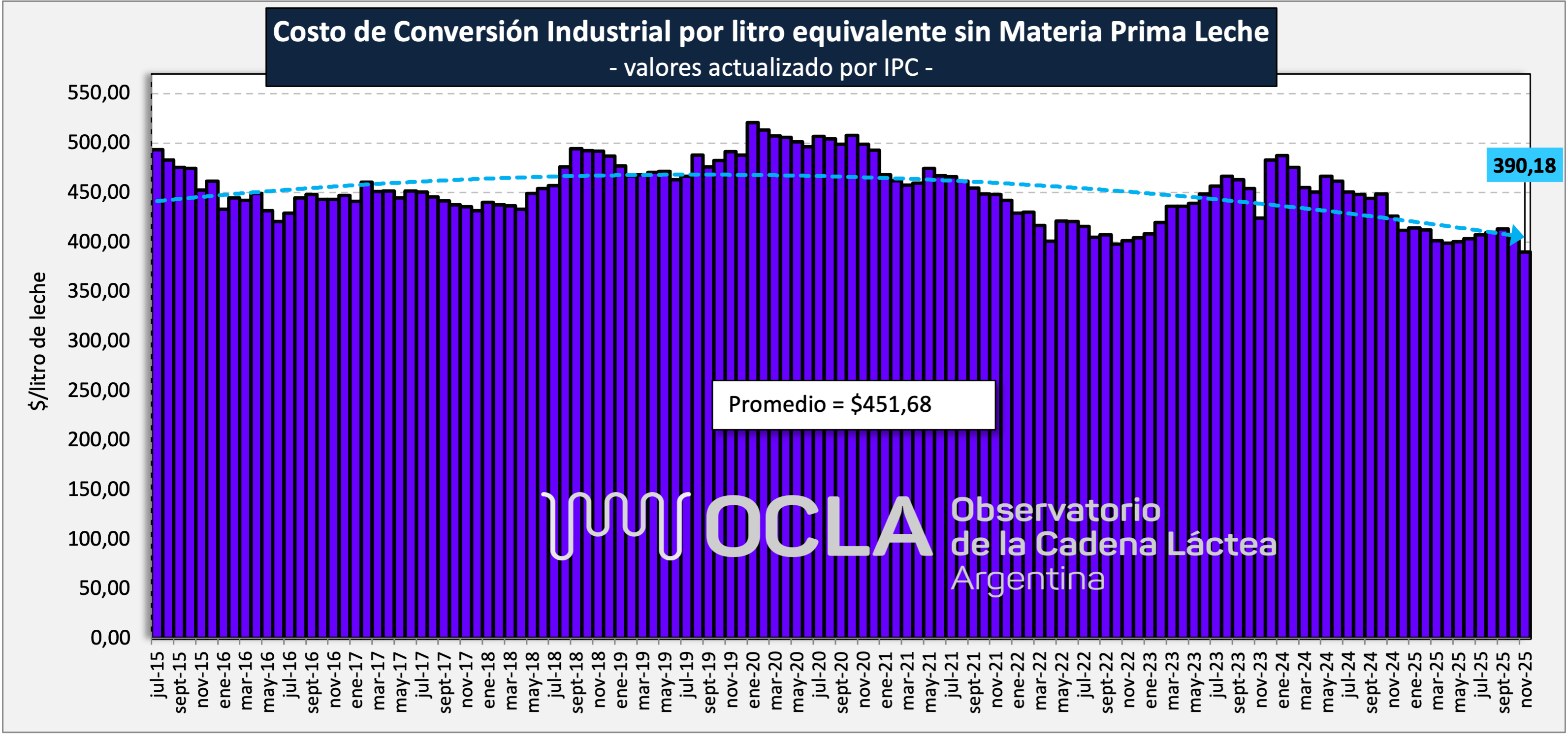 Incluye los costos industriales de fabricación, administración y comercialización sin considerar el costos de la materia prima leche