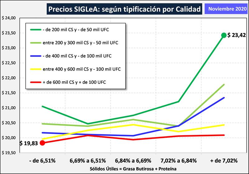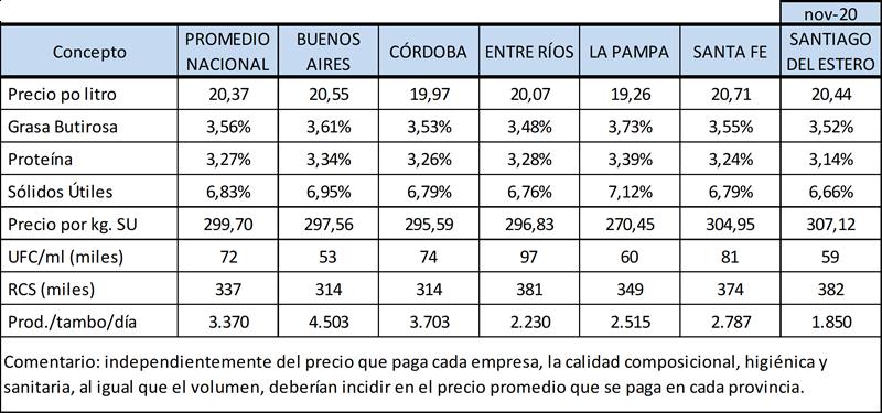 Los precios publicados surgen del promedio del precio básico + bonificaciones de calidad por estrato + el promedio de bonificaciones comerciales ponderados por litro. Los parámetros higiénicos y sanitarios son fijos mes a mes y los parámetros composicionales para definir cada rango variarán por mes en función a la estructura composicional (grasa butirosa + proteína).