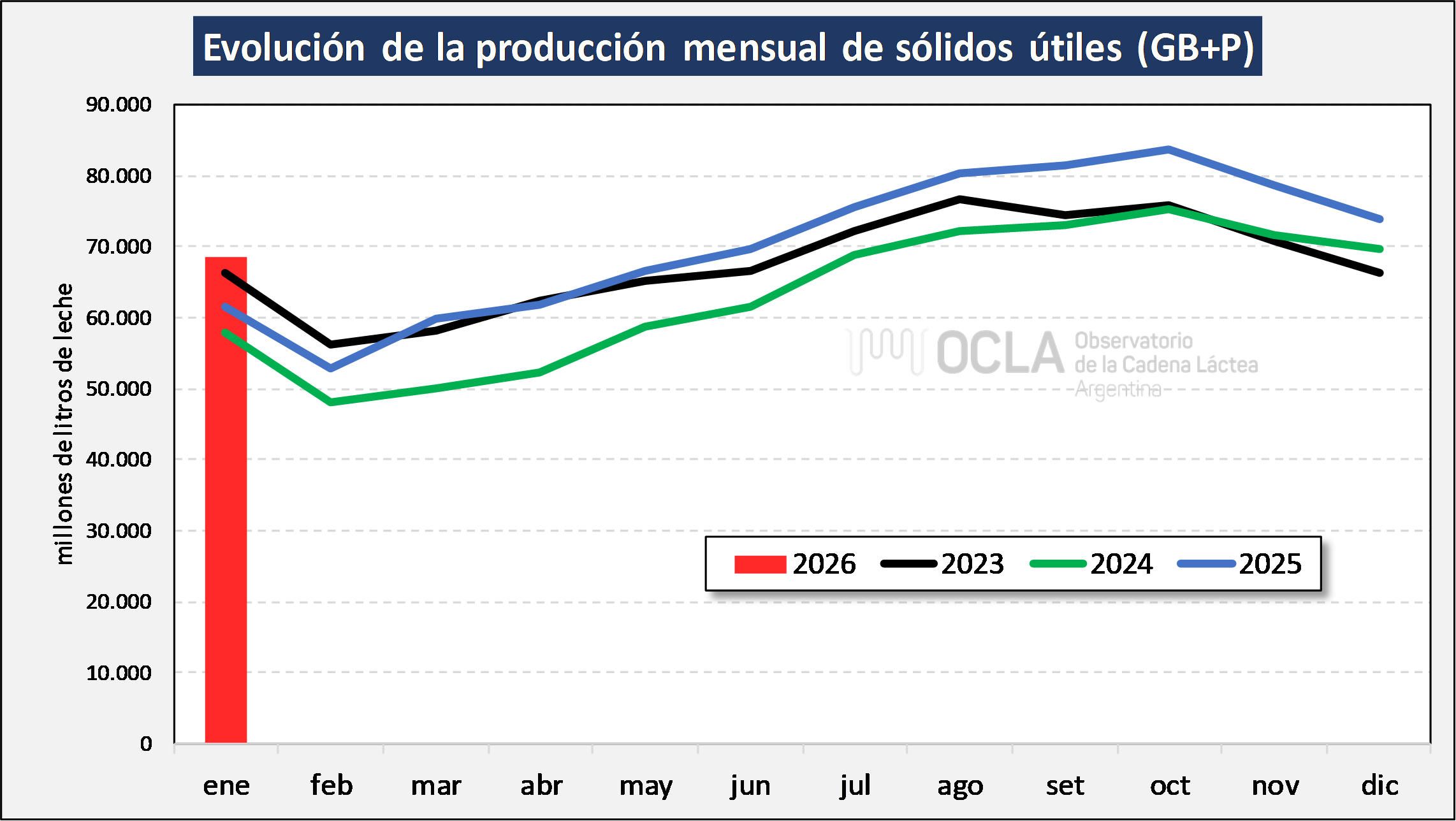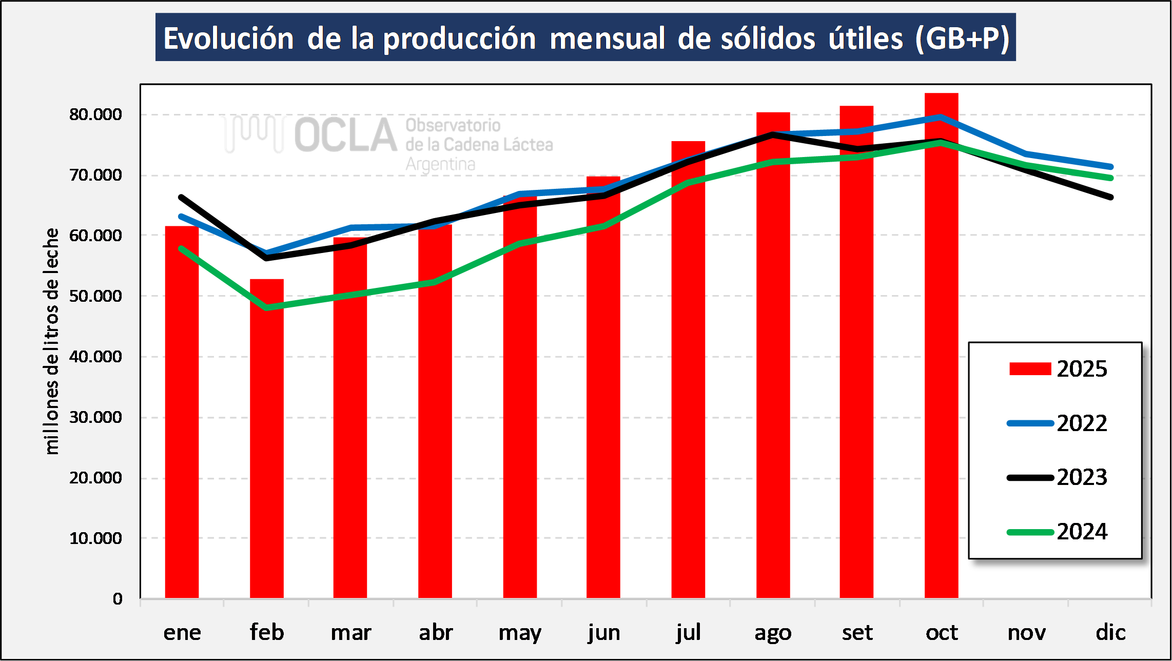 Producción nacional de leche cruda y multiplicada por la suma de tenores de grasa butirosa y proteína que aporta la DNL con datos de SIGLeA-LUME.