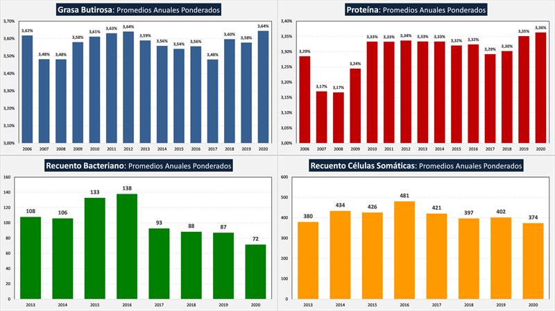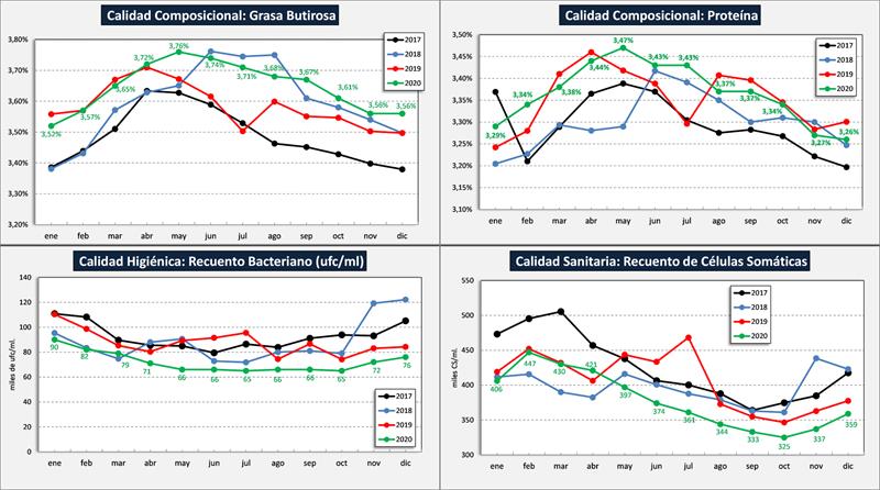 Comparación de los principales parámetros de Calidad de Leche: 2020 vs 2019
