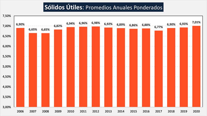 Promedios ponderados anuales de la Calidad de Leche