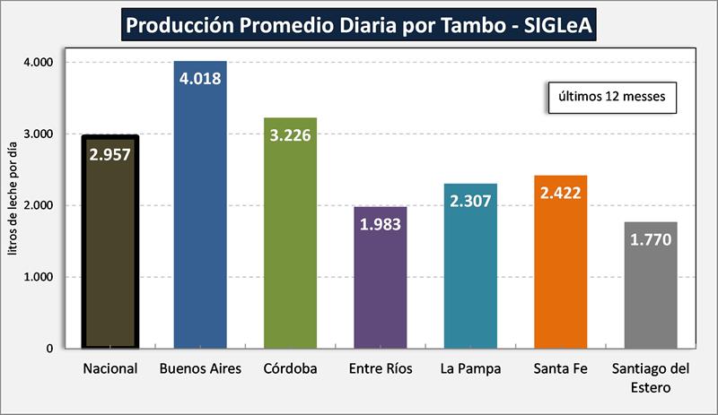 La producción promedio diaria por tambo y por provincia que graficamos aquí es la que arrojan los datos de SIGLeA – LUME sobre 8.119 liquidaciones de leche mensuales (348 industrias).