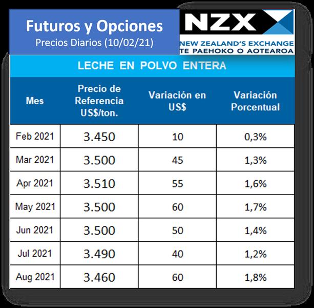 Mercado de Futuros NZX – Leche en Polvo Entera 10/2/2021