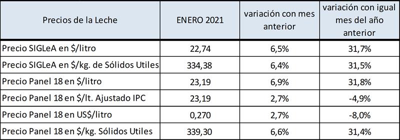 Precio de la Leche al Productor – enero 2021 19/2/2021