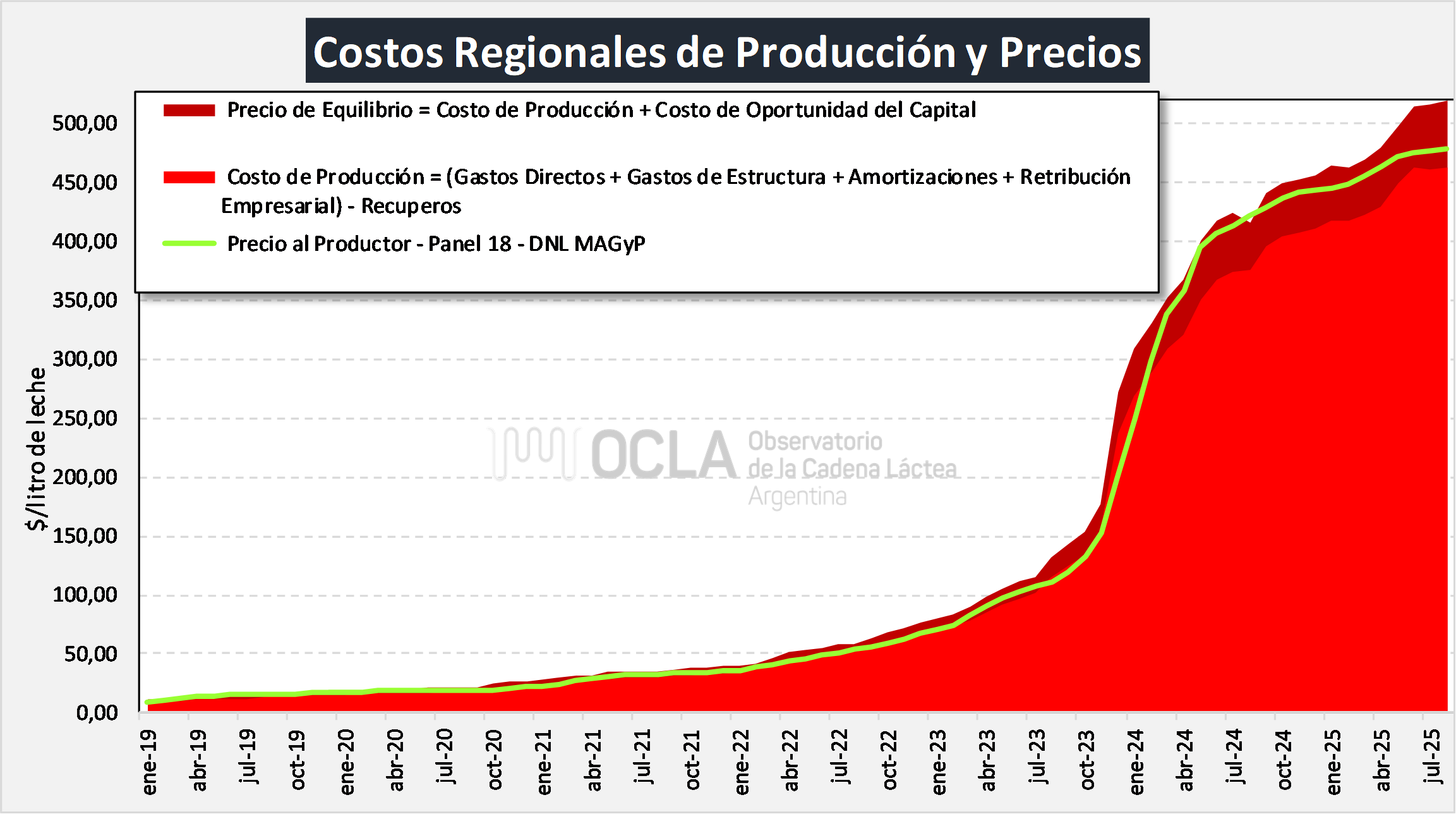 Comparación entre el Precio que percibe el productor, el Costo de Producción y el Precio de Equilibrio (Costo de Producción + Costo de Oportunidad del Capital).