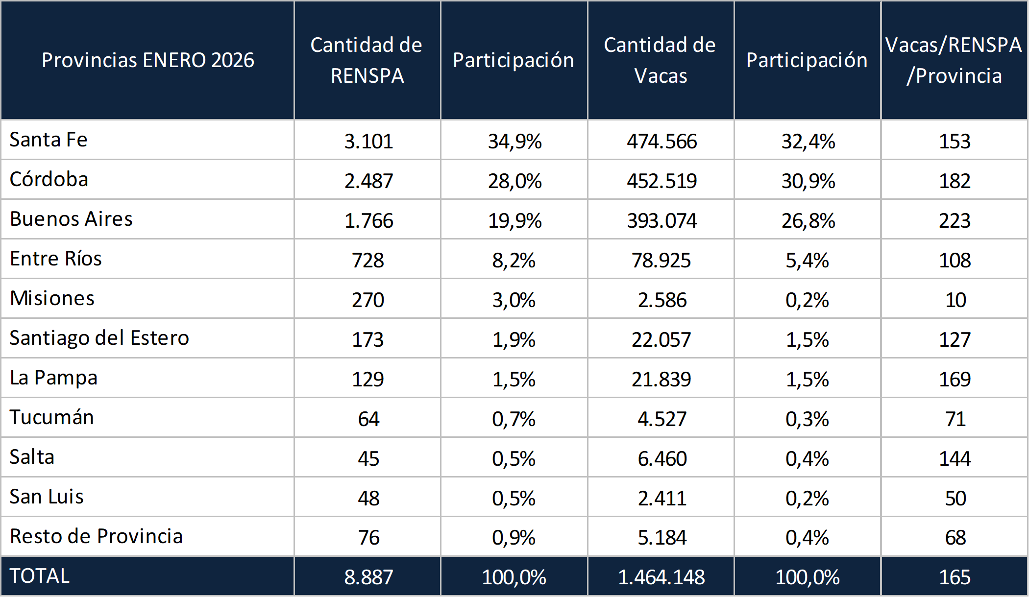 La cantidad de vacas y unidades productivas surgen de la publicación de SENASA, del cociente entre ambos surge la cantidad de vacas totales por unidad productiva. Los litros por vaca y por año es una estimación de OCLA que luego al multiplicarlo por la cantidad de vacas por unidad productiva, se obtiene la producción por provincia, el total país y la participación de cada provincia en el total y también la producción por tambo por provincia y por día. Estos últimos datos son meramente orientativos ya que no se dispone de ellos por un fuente específica.