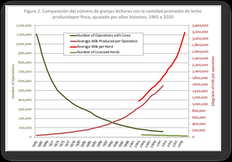 Desde mediados del siglo XX, los agricultores estadounidenses se han cada vez más especializado en su enfoque productivo. Desde entonces, los agricultores estadounidenses han tenido un historial envidiable de aumentar la producción, ser más eficientes y brindar a los consumidores un producto nutritivo y de alta calidad a un precio asequible. Durante gran parte de este período, los precios minoristas de los productos lácteos aumentaron a la mitad de la tasa de inflación general de los precios al consumidor. Esa es una muy buena historia de éxito para los productores de leche. La tragedia está en el cambio en la estructura del sector agrícola y la transformación de las comunidades rurales.