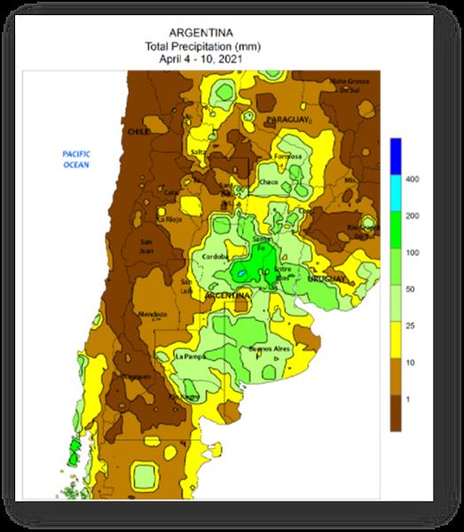 En América del Sur, entre finales de marzo y las dos primeras semanas de abril, varias lluvias contribuyeron a una mejor calidad de los pastos. En Brasil, las condiciones climáticas más secas están preocupando a los agricultores por la cosecha de maíz de segunda.