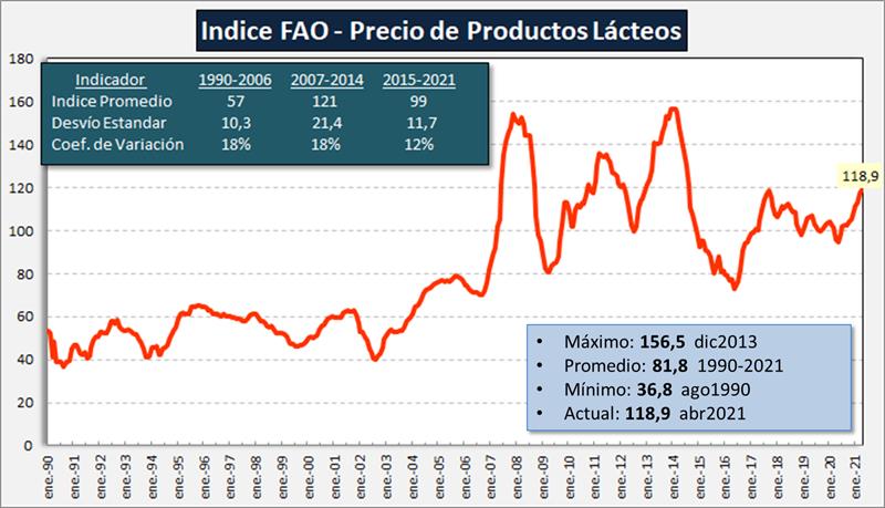 Indice de Precios de los Lácteos de FAO 6/5/2021