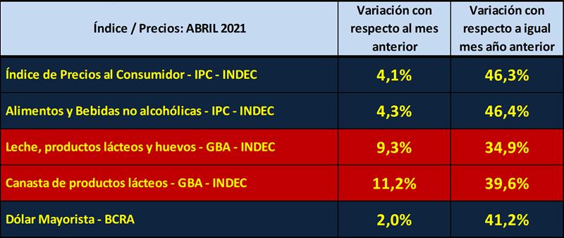Como se indica más arriba en función de diferentes índices, los precios de los productos lácteos tuvieron una variación interanual de alrededor del 37%, cuando la inflación minorista fue de 46,3%, los alimentos y bebidas no alcohólicas aumentaron un 46,4% en el año y el dólar oficial BCRA tuvo una variación interanual del 41,2%, lo que evidencia claramente que a pesar de los últimos ajustes mencionados, los productos lácteos mantienen un retraso del orden del 8%.