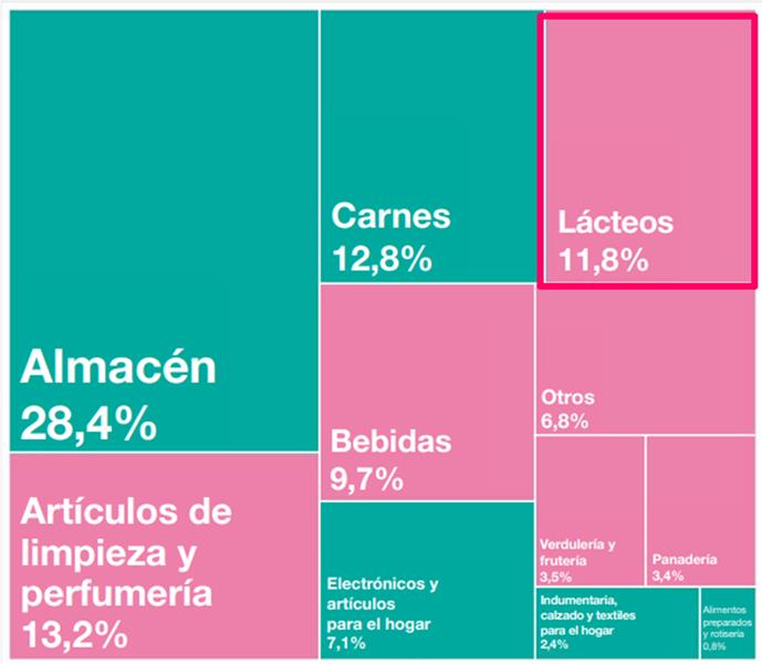 - Ventas de lácteos en supermercados: $ 13.101,5 millones, +6,7% respecto