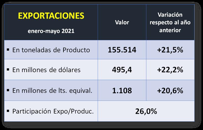 Exportaciones de Productos Lácteos – datos definitivos a MAYO del 2021 3/8/2021![]() elaborado por el OCLA con información de la DNL - MAGyP