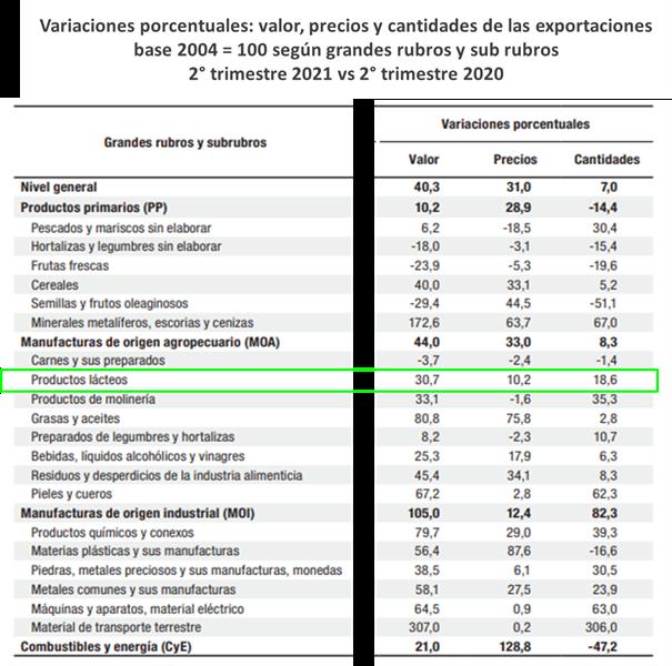 Precios y Cantidades del Comercio Exterior - Lácteos 10/8/2021