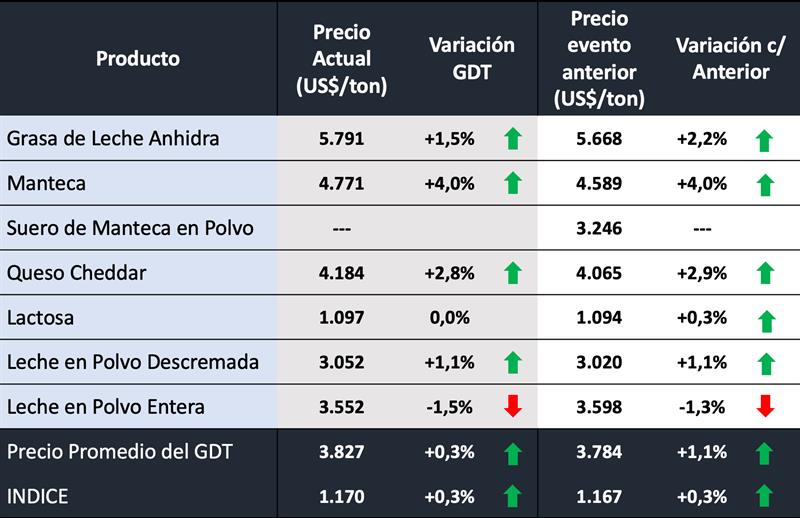 Evento N° 290 del Global Dairy Trade 17/8/2021