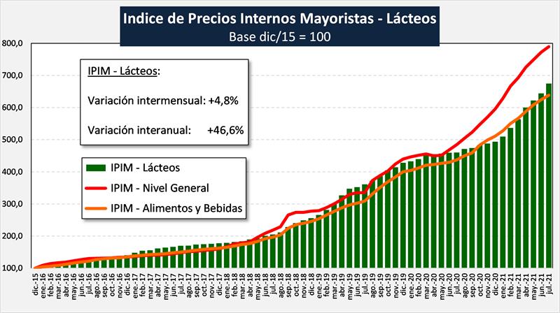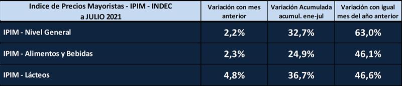 Índice de Precios Internos Mayoristas – IPIM – Lácteos – julio 2021 18/8/2021