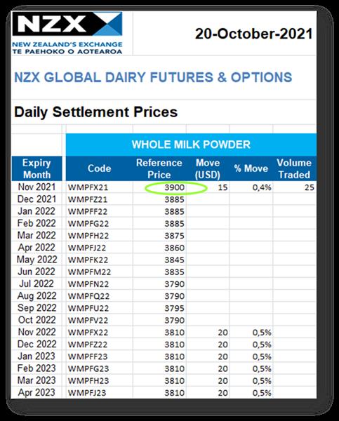 En el día de hoy el precio de la leche en polvo entera alcanzó para la posición noviembre 2021 un valor de US$ 3.900/ton.