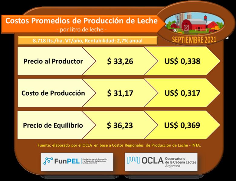 Costos Regionales de Producción de Leche, valores actualizados a SEPTIEMBRE del 2021 23/10/2021