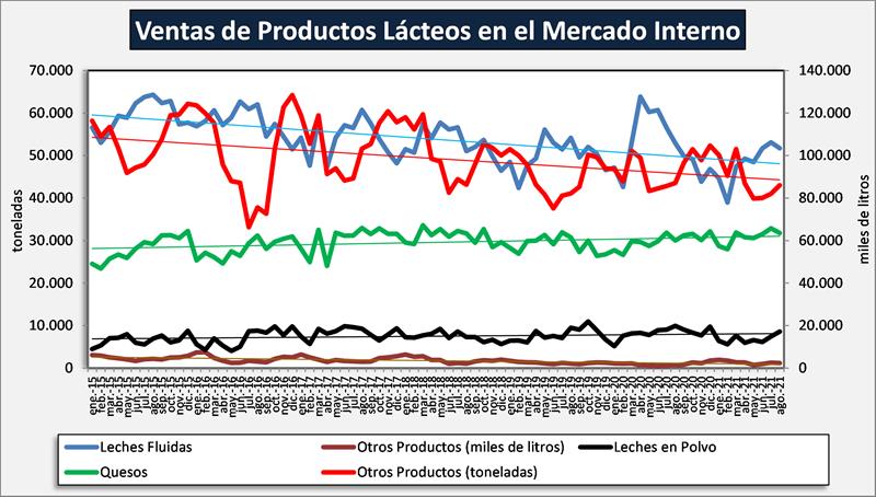 Ventas de Productos Lácteos en el Mercado Interno – agosto 2021 28/10/2021