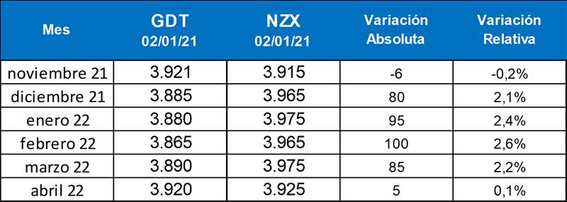 elaborado por el OCLA con información del NZX, GDT y EMMO