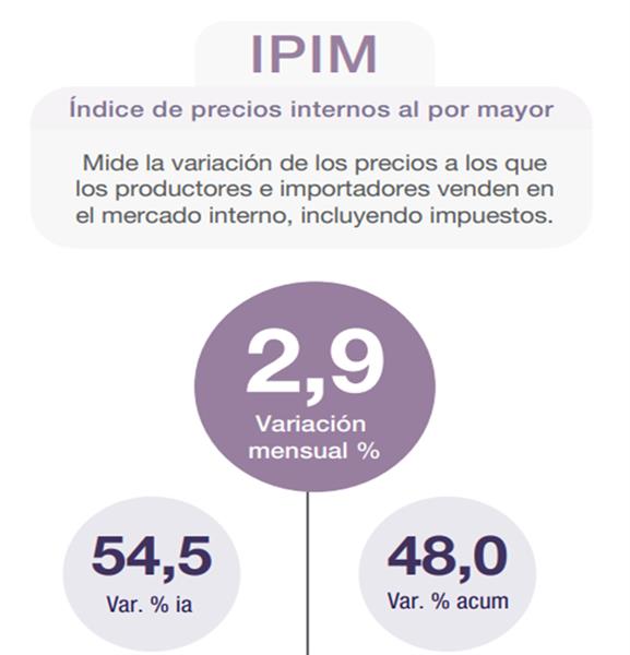 El nivel general del índice de precios internos al por mayor (IPIM) registró un aumento de 2,9% en noviembre de 2021 respecto del mes anterior, un incremento del 48,0% en el período enero-noviembre y acumula una suba del 54,5% en los últimos 12 meses.