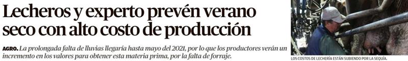 Lo que hace años se viene comentando, es que la escasez de lluvias en el verano ya es una realidad en el clima de la zona, donde cada vez se ven mayores dificultades para producir el forraje que necesitan los animales para la lechería, donde la falta de lluvias, sumado a las complicaciones generadas por la pandemia mundial, han hecho que este rubro se vea afectado por los altos costos de producción.