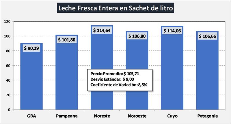 Se observa también en el análisis de los datos y con la información de Consultoras de Mercado, que existe una gran dispersión de precios en función al canal comercial y a la región. El cuadro siguiente ejemplifica la diferencia regional.