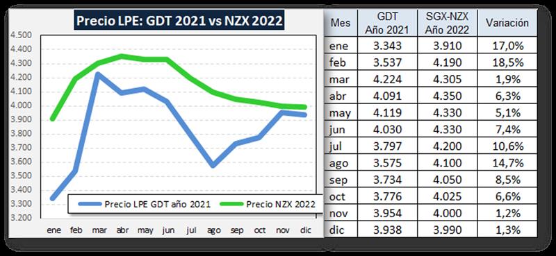 Precio de la LPE: GDT 2021 y Futuros 2022 16/1/2022