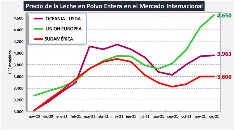 Precio de la Leche en Polvo Entera en el mercado internacional 18/1/2022