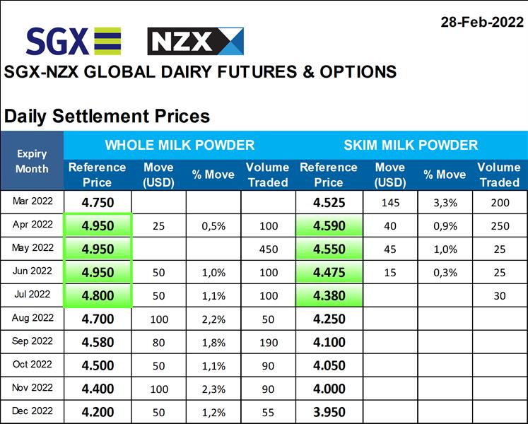 Precio de la Leche en Polvo Entera y Descremada en el mercado internacional 28/2/2022