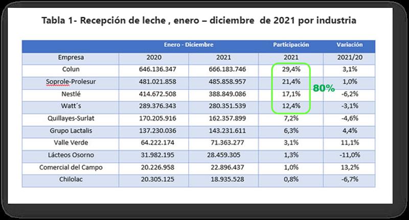 CHILE: Ranking de la industrias lácteas - 2021 4/3/2022