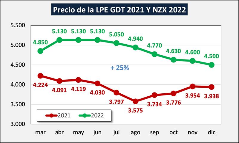 El mercado de futuros de Nueva Zelanda en el día de hoy presentó cotizaciones que superan la barrera de los US$ 5.100/ton. (abril-junio) y se mantiene en el ritmo ascendente de los últimos días, y de continuar, en breve se superará el record histórico que luego debería materializarse en el mercado disponible GDT.