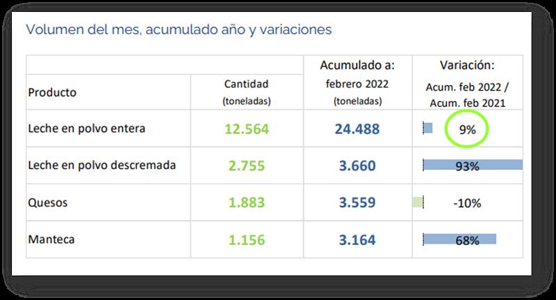 URUGUAY: exportaciones de lácteos - febrero 2022 11/3/2022