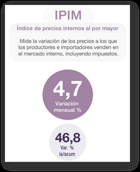El nivel general del índice de precios internos al por mayor (IPIM) registró un aumento de 4,7% en febrero de 2022 respecto del mes anterior, 8,6% para el primer bimestre del año y acumula una suba del 46,8% en los últimos 12 meses.