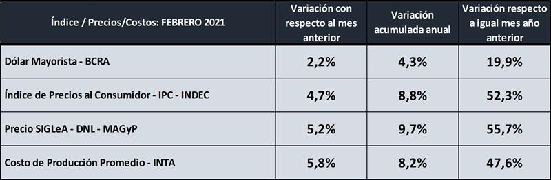 El Costo de Producción Promedio subió en febrero de 2022 un 5,8% respecto a igual mes del año pasado y llega a un 47,6% de variación interanual.