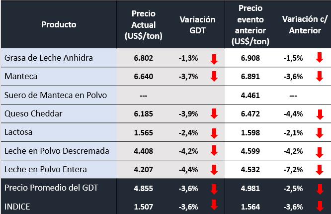 Evento N° 306 del Global Dairy Trade 19/4/2022