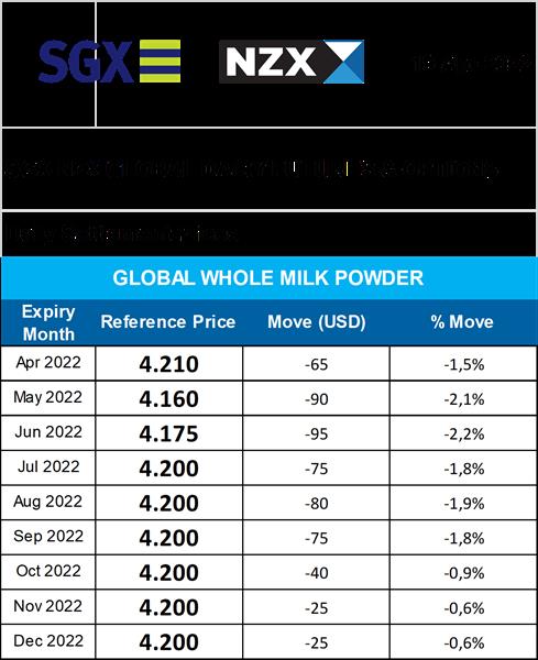 Mercado de Futuros NZX – Leche en Polvo Entera 19/4/2022
