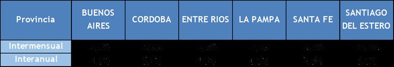 Por provincia, en general todas cayeron en la comparación intermensual, pero cuando lo miramos de forma interanual todas las provincias crecen entre 0,5 y 4,6% y la única provincia que reduce su producción es Buenos Aries, seguramente más afectada por las importantes lluvias.
