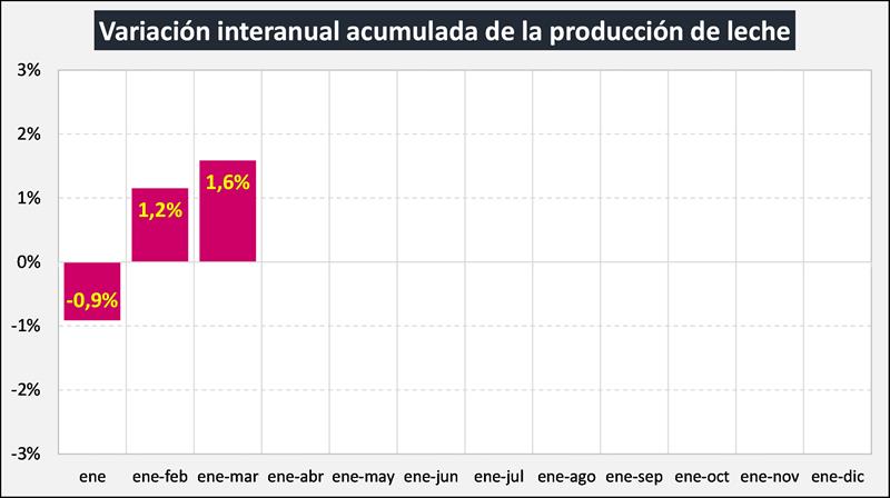 La producción total de leche alcanzo en 2021 los 11.553 millones de litros, es decir, 4,0% más respecto al año anterior y 11,7% respecto al 2019 (+ 1.210 millones de litros de leche).
