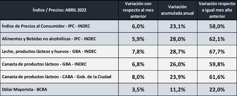 • Precios de los lácteos al mes de abril de 2022 13/5/2022