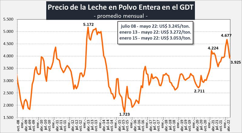 Precio de la Leche en Polvo Entera en el mercado internacional 17/5/2022